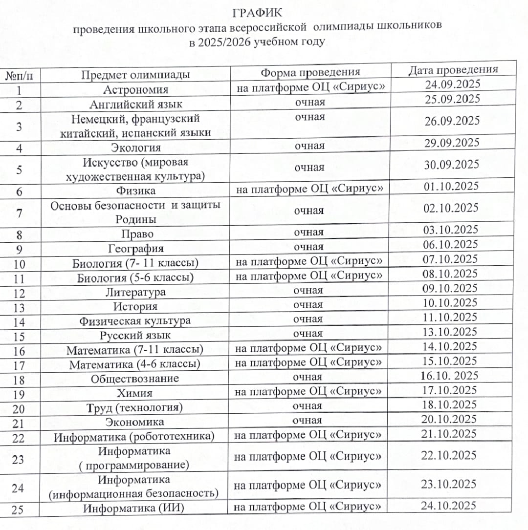 Школьный этап всероссийской олимпиады школьников